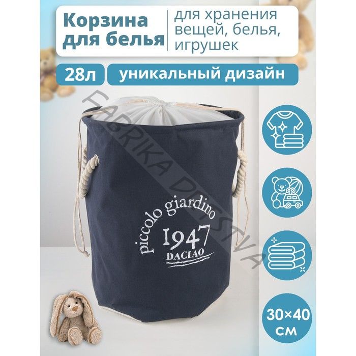 Корзина бельевая текстильная Доляна «Пикколо», 30x30x40 см, цвет синий