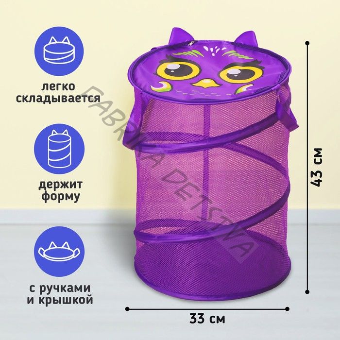 Корзина для игрушек «Сова», с ручками и крышкой, 33 х 43 см