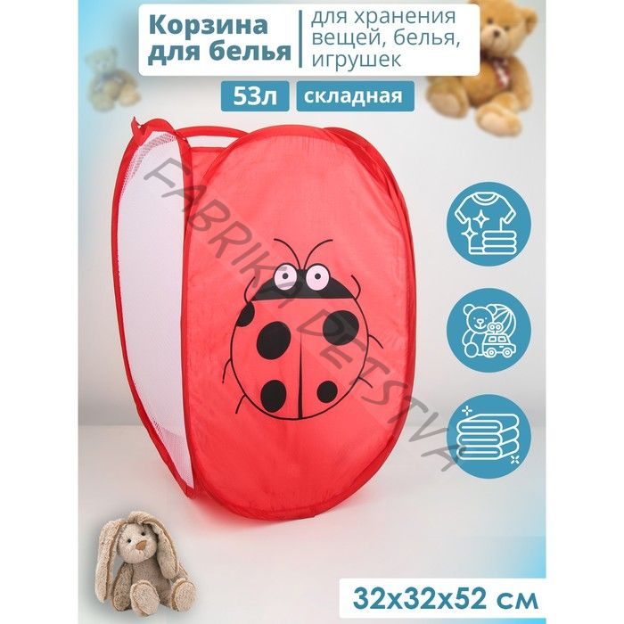 Корзина-сетка Доляна «Божья коровка», складная, 32x32x52 см, цвет красный