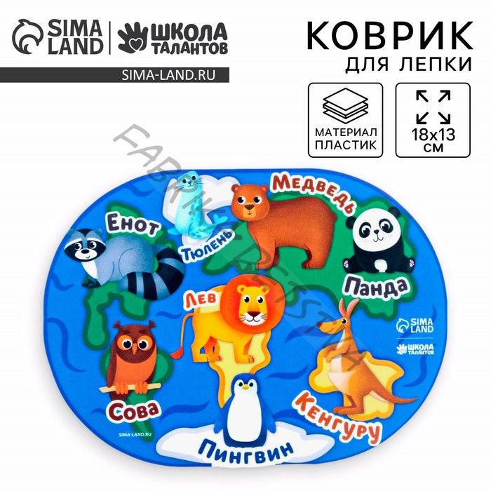 Коврик для лепки «Звери», 18x13.1 см