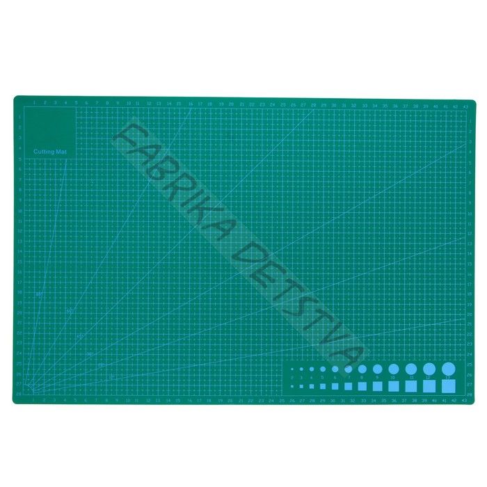Коврик для рукоделия имеет две рабочие поверхности. Сторона для резки: удобная рабочая поверхность и защита для стола; содержит линейку с каждого края; вся поверхность разделена на квадраты 10 х 10 мм, 50 х 50 мм, а также овалы и круги разных диаметров; имеет углы 15, 30, 45, 60, 75 и 90° для точной угловой резки; безопасность и удобство при резке обеспечивает нескользящая сторона коврика; плотная поверхность всегда остаётся как новая и не тупит лезвие ножа. Сторона для раскатки (лепки): разработана специально для работы со всеми типами и марками полимерной глины и других материалов для лепки; легко моется; не впитывает краски и медиумы на водной, масляной и акриловой основе
