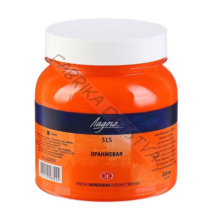 Краска акриловая художественная «Ладога», 220 мл, оранжевая