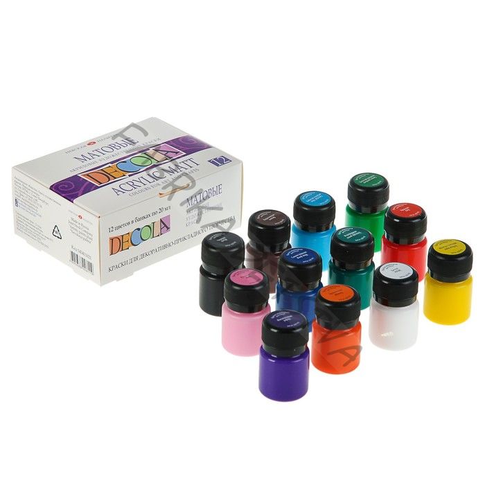 Краска акриловая, набор 12 цветов х 20 мл, Decola, Matt, матовые