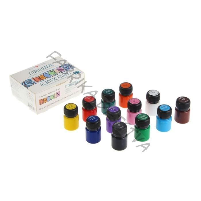Краска акриловая, набор 12 цветов х 20 мл, Decola, Shine глянцевые