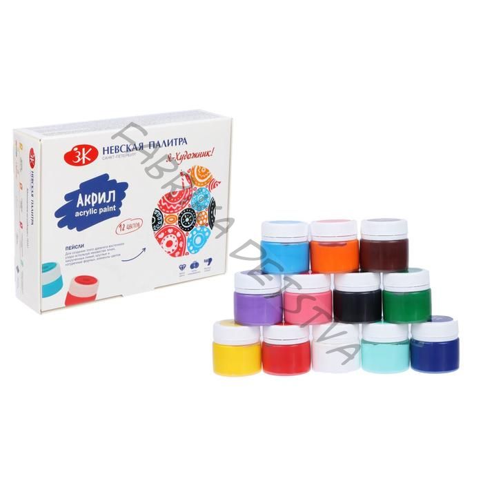Краска акриловая, набор 12 цветов x 15 мл, «Я - Художник!», глянцевые