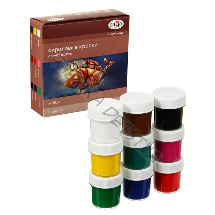 Краска акриловая, набор 9 цветов x 20 мл, Гамма «Хобби», морозостойкая, глянцевая