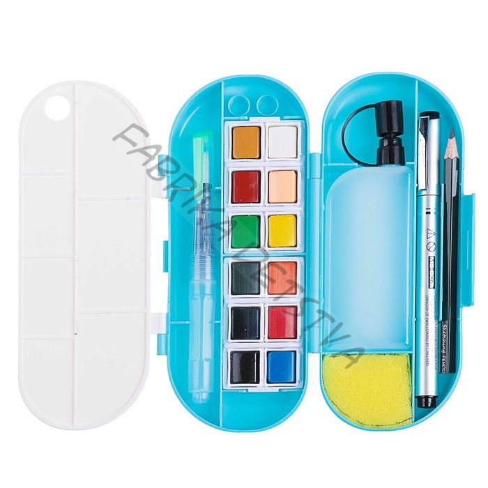 Краски акварельные Superior, профессиональные, 12 цветов, в кюветах, с палитрой, кистью, ручкой, 2 губки,емкость для воды