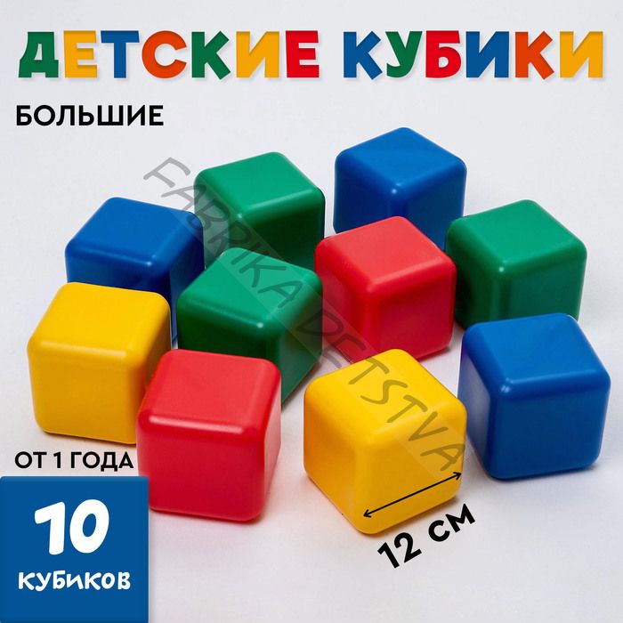 Кубики детские, пластиковые, цветные, 10 штук, 12 x 12 см