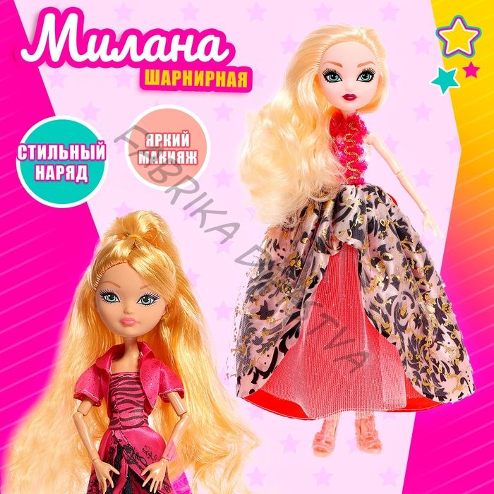 Милана знает всё о моде. Девушке нравится экспериментировать и умело комбинировать несочетаемые вещи! Она не боится ярких цветов ни в одежде, ни в причёске. У модели двигаются руки, ноги и голова. Локти и колени девушки сгибаются. Волосы куклы можно расчёсывать и заплетать. Для детей от 3 лет.