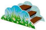 Лаз «Полянка» предназначен для детей дошкольного возраста. Он изготовлен в виде лесенки из влагостойкой фанеры. Боковины лаза покрыты печатными рисунками, выполненными методом UV-печати.