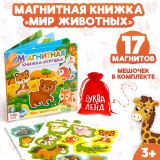 Магнитная книжка-игрушка «Мир животных», с мешочком, 8 стр.