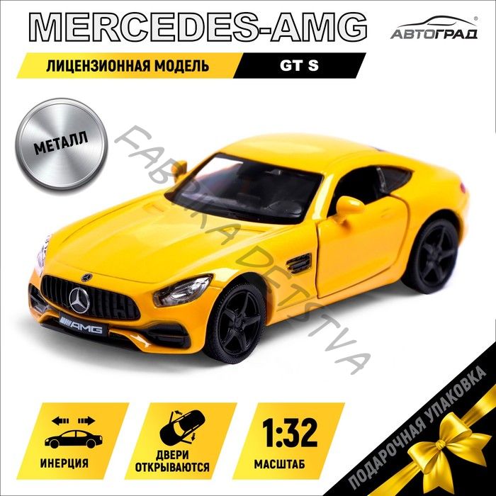 Машина металлическая MERCEDES-AMG GT S, 1:32, открываются двери, инерция, цвет жёлтый