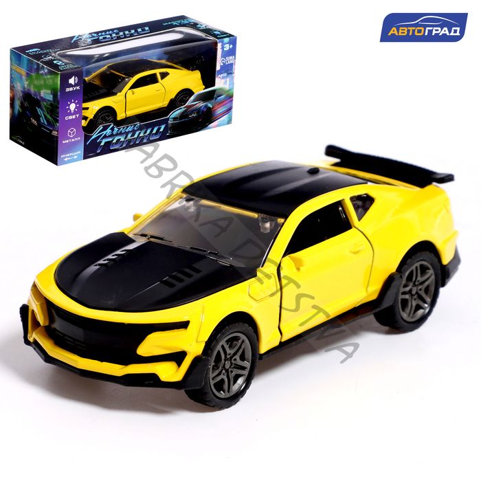 Машинка металлическая «Ночные гонки», инерционная, 1:32, открываются двери, звуковые и световые эффекты, цвет жёлтый