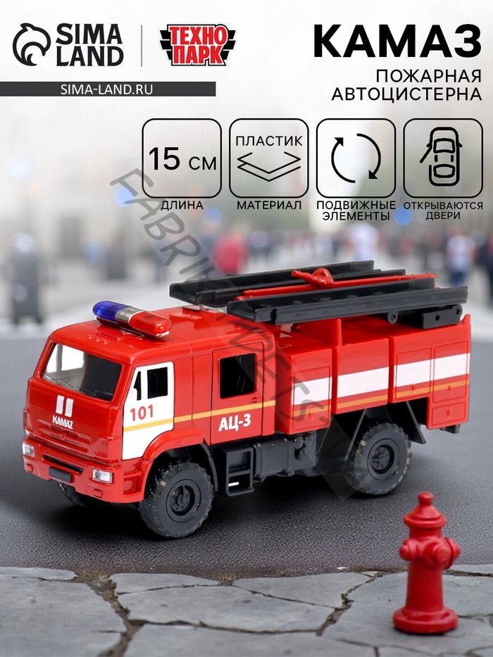 Машинка металлическая «Пожарная автоцистерна», открываются двери, 15 см