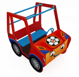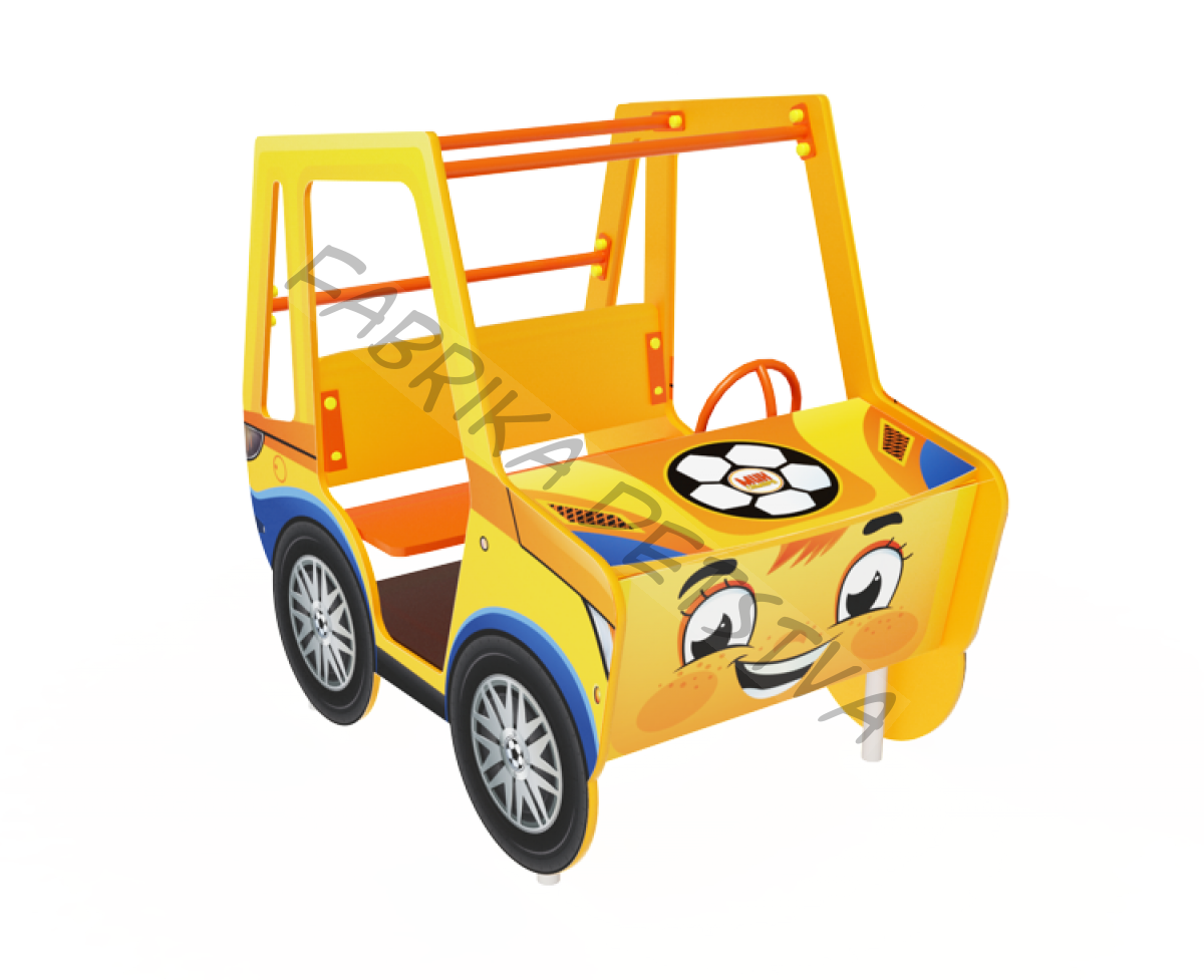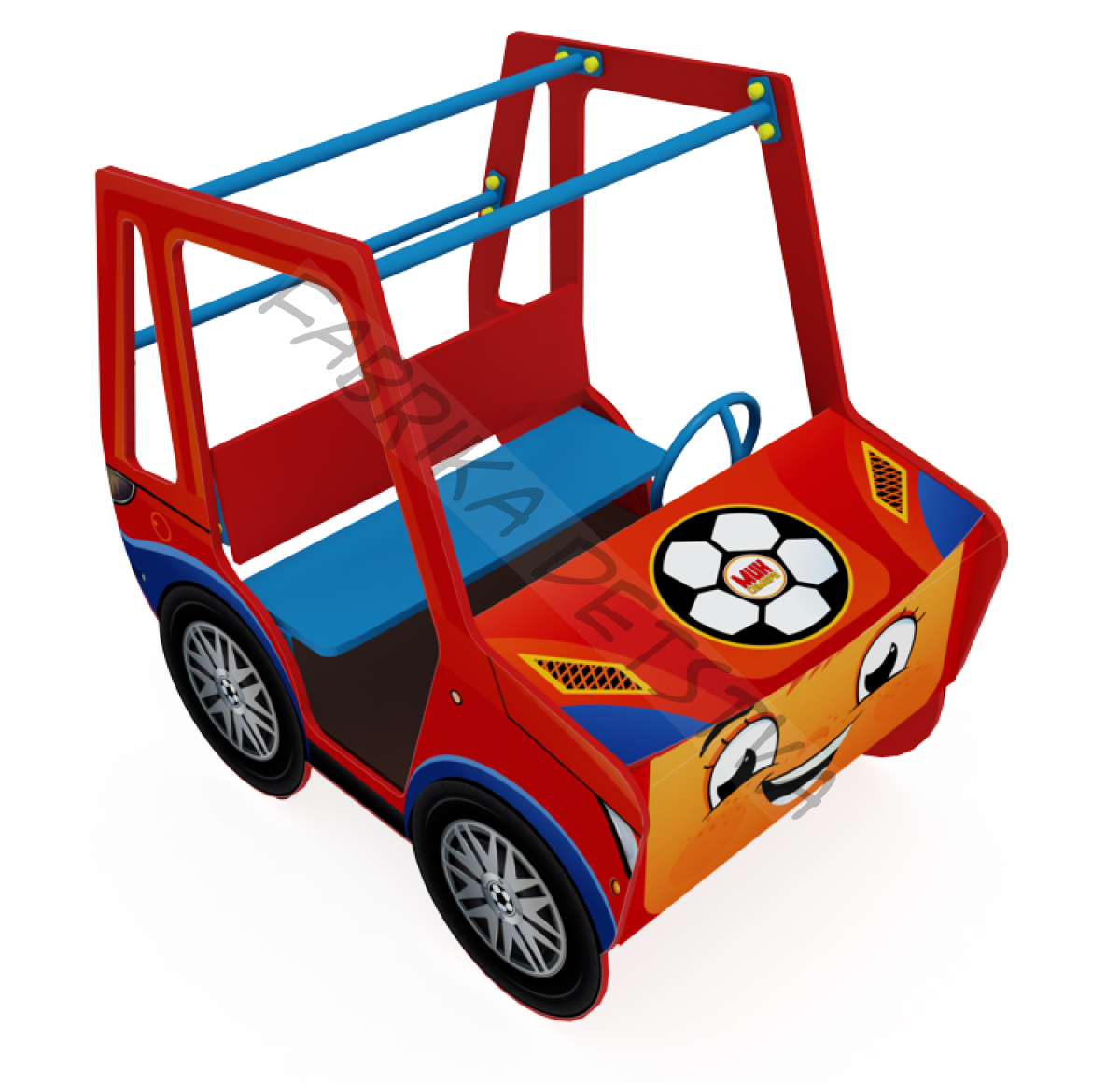 Борта стилизованы под машину и выполнены из влагостойкой фанеры толщиной 18 мм и состоят из боковых бортов размером 1200х1000х18 - 2 шт, капота 820х400х18 -1 шт., приборной панели (820х250х18 мм), передней панели (820х450х18 мм), колес ( диаметром 400 мм толщина фанеры 9 мм), на передней панели имеются фары из фанеры толщиной 9 мм, диаметром 120 мм и решетка радиатора (690х220х9 мм).
