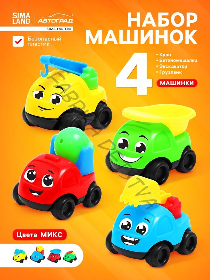 Машинки детские «Спецтехника», набор 4 шт., цвета МИКС