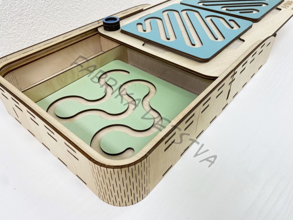 Коробка и лабиринты выполнены из берёзовой фанеры и покрыты стойкими к выцветанию полиуретановыми красками без запаха.