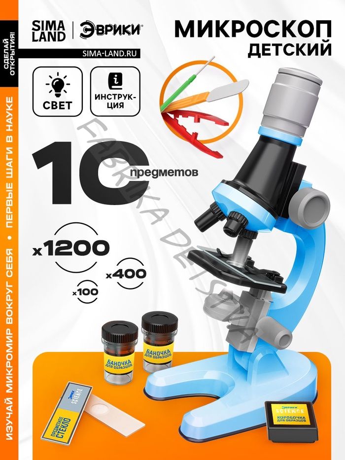 Микроскоп детский «Юный ботаник», кратность х100, х400, х1200, подсветка