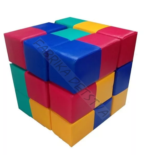 Набор состоит из 13 двухцветных брусков разных цветов; в собранном виде это куб, имеющий размеры 60х60х60 см. Игровая задача для детей младшего дошкольного возраста: произвольно собрать куб из 13 разноцветных «кирпичиков»: 12 модулей размером 20х40х20 и 1 модуль размером 20х60х20.