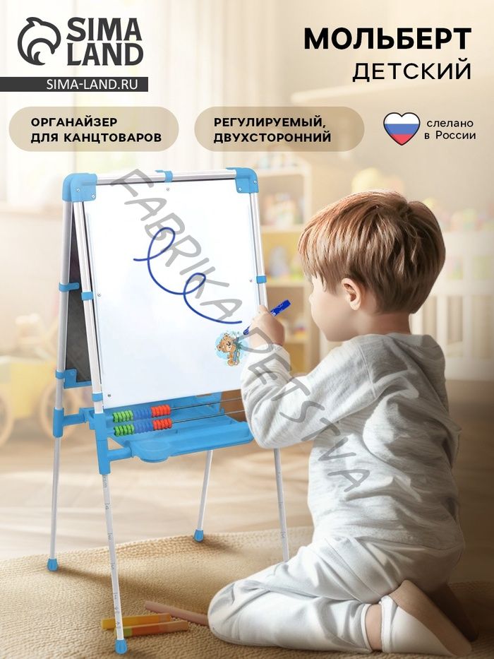 Мольберт детский двусторонний «Доска знаний», регулируется по высоте, учебные принадлежности, голубой