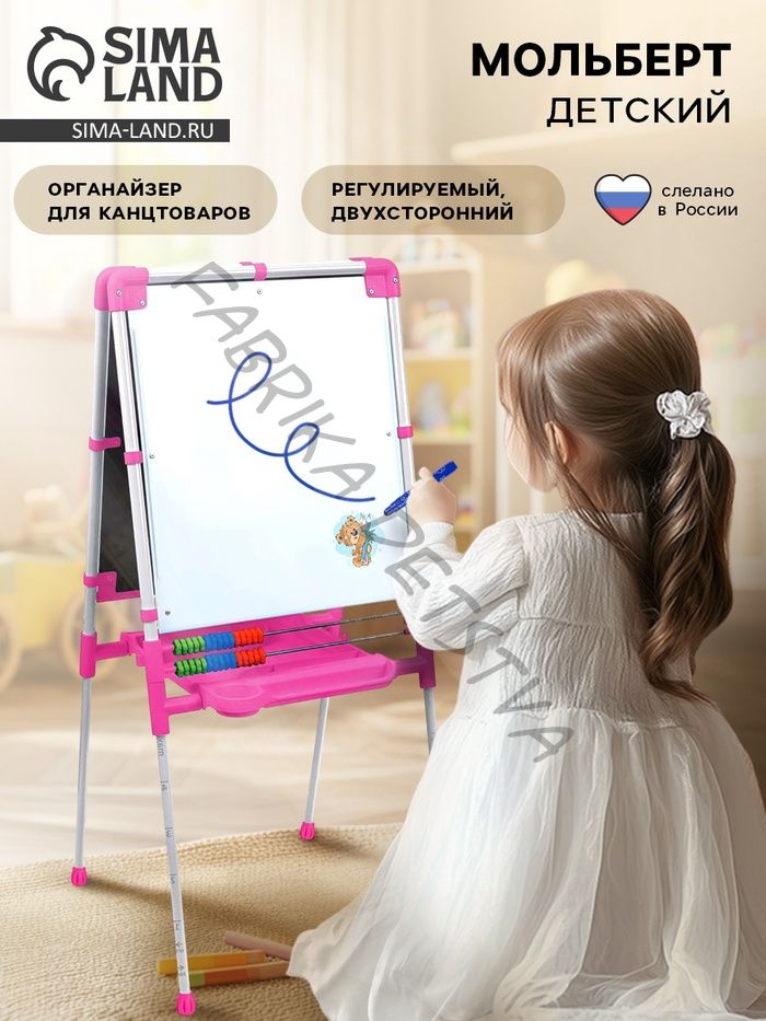 Мольберт детский двусторонний «Доска знаний», регулируется по высоте, учебные принадлежности, розовый
