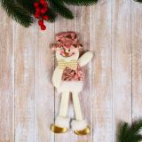 Мягкая подвеска «Снеговик в блестящем костюмчике, длинные ножки», 8x27 см, розовый