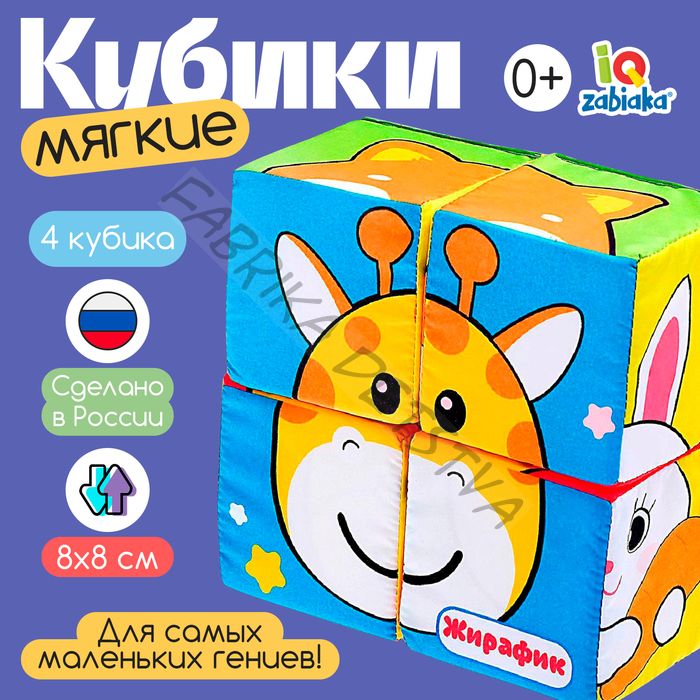 Мягкие кубики «Зверята», 4 шт, 8 х 8 см, по методике Монтессори