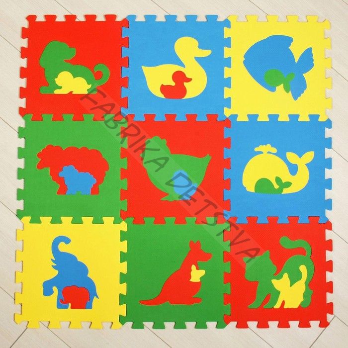 «Мягкий пол» — это покрытие, которое отлично подходит для детских комнат, так как оно приятное на ощупь и экологически чистое. Ковёр быстро и просто укладывается, а если он запачкается, то вы легко его почистите в домашних условиях. Такая поверхность смягчит падение ребёнка, обеспечит тепло- и звукоизоляцию. Вместе с этим покрытием покажите малышу новых зверей и их детёнышей. Каждый блок съёмный, вы можете вынимать элементы с животными поменьше и давать задание крохе: расставить их по местам.