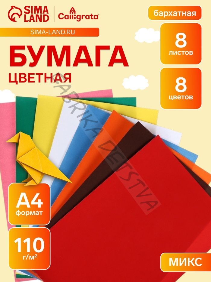 Набор бумаги бархатной А4, 8 листов, 8 цветов, плотность 110 г/м2