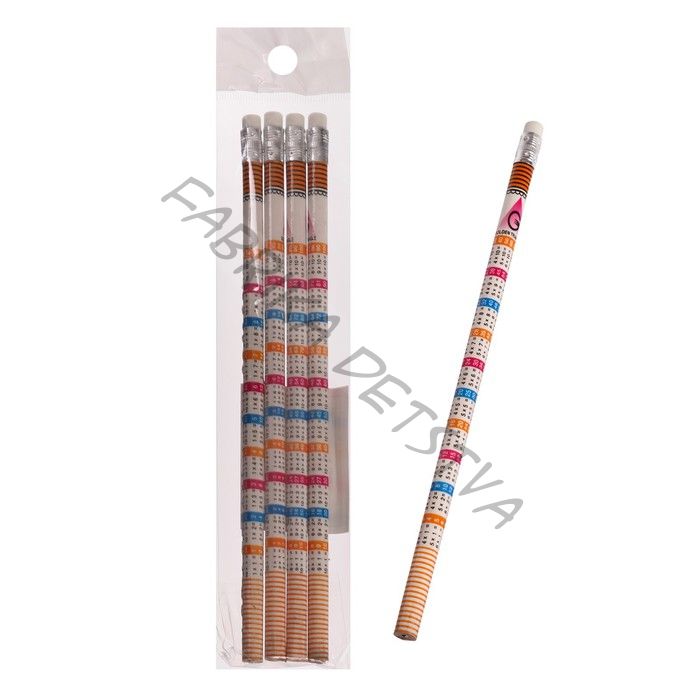 Набор чернографитных карандашей с ластиком и таблицей умножения, 4 штуки