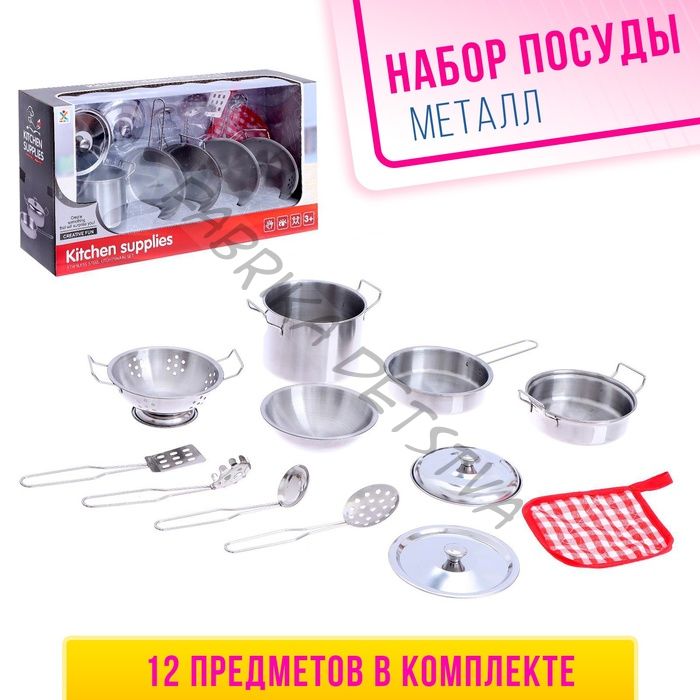 Набор детской металлической посуды «Готовим обед», 12 предметов