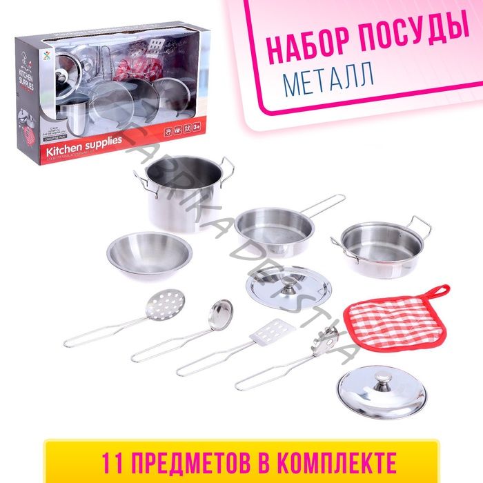 Набор детской металлической посуды «Готовим ужин», 11 предметов