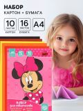 Набор для творчества «Минни Маус» А4, 10 листов цветного одностороннего картона, 16 листов цветной двусторонней бумаги