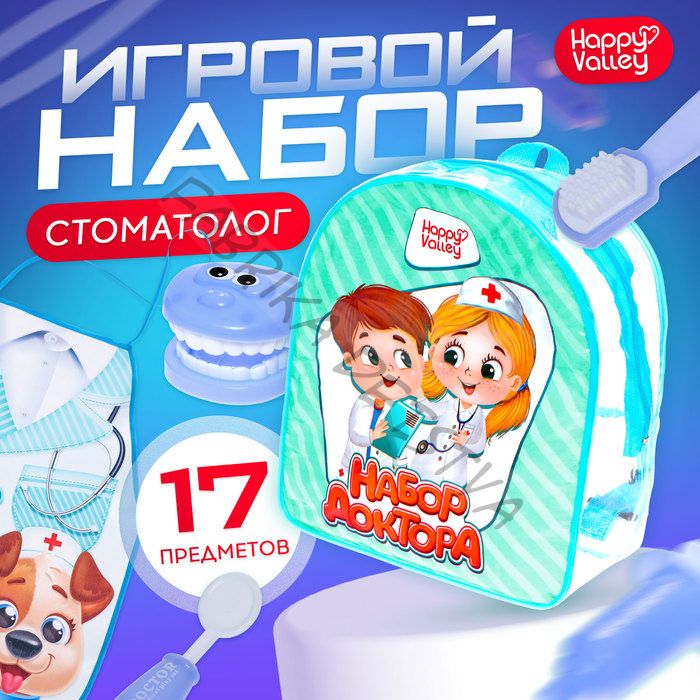 С набором стоматолога у ребёнка будет всё нужное, чтобы вылечить зубки у кукол и плюшевых зверей. Разнообразные предметы сделают знакомство с профессией врача увлекательным. Особенности набора Включает в себя 17 предметов. Рюкзак помогает хранить все нужные инструменты в одном месте и брать с собой куда угодно. На игровых ламинированных карточках удобно записывать рецепт на лекарства и менять имя доктора с помощью маркера пиши-стирай. Фартук подходит для лечения пациентов, занятий творчеством с использованием сухих материалов: пластилина, цветных мелков, кинетического песка и др. Наклейками с зубами можно украсить детскую пасту. Схема зубов поможет узнать о них больше и научиться правильно ухаживать за ними. Развиваемся играя Представив себя доктором, ребёнок освоит социальные роли, получит новые знания о важных профессиях, станет внимательнее и заботливее. Такая игра не только пробудит фантазию юного специалиста, но и поспособствуют развитию эмоционального восприятия.