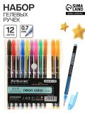 Набор гелевых ручек, 12 цветов, корпус чёрный в полоску в стержень, в блистере на кнопке