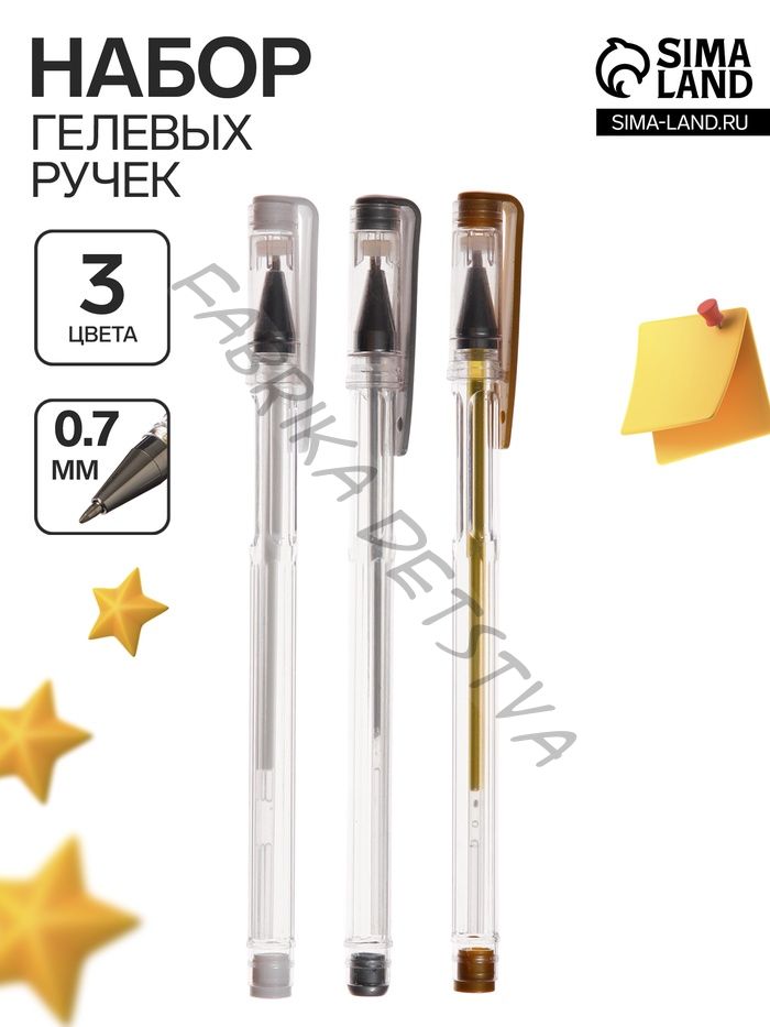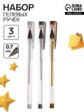 Набор гелевых ручек 3 цвета, корпус прозрачный, белый, серебристый, золотой
