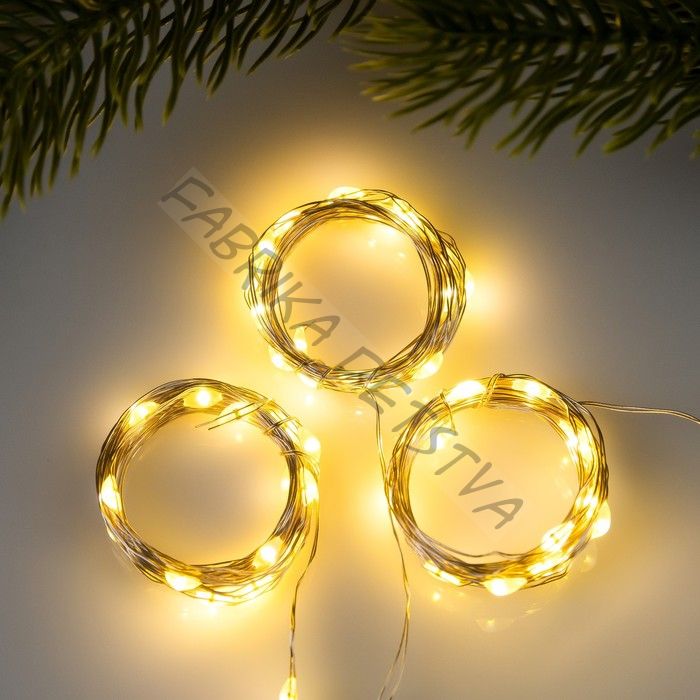 Набор гирлянд «Нить» 2 м роса, IP20, серебристая нить, 20 LED, свечение тёплое белое, 3 режима, батарейки AG13х3 (в комплекте), 3 шт.