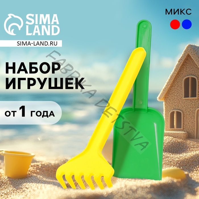 Набор игрушек для песочницы, совок и грабли, цвета МИКС