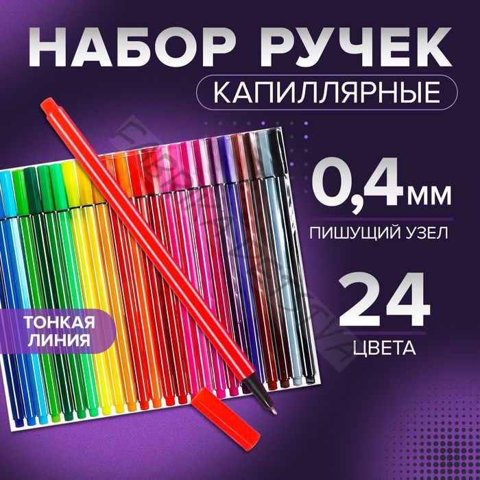 Набор капиллярных ручек (маркеров), 0.4 мм, 24 цвета, тонкая линия