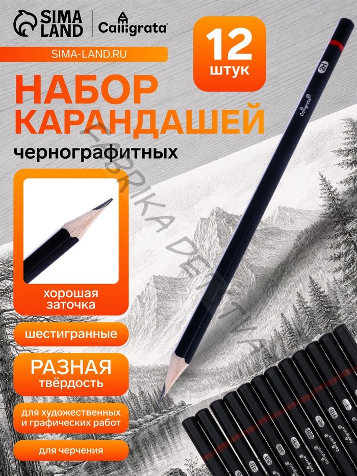 Набор карандашей чернографитных Calligrata, 12 штук, разная твёрдость, шестигранные, деревянные