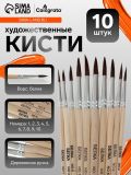 Набор кистей для рисования, белка, 10 штук: № 1, 2, 3, 4, 5, 6, 7, 8, 9, 10, Calligrata, круглые, деревянная ручка, международный размер