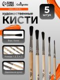 Набор кистей для рисования, белка, 5 штук: №: 1, 2, 3, 4, 5, Calligrata, круглые, деревянная ручка, в пенале