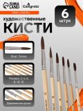 Набор кистей для рисования, белка, 6 штук: № 2, 4, 6, 8, 10, 12, Calligrata, круглые, деревянная ручка, международный размер