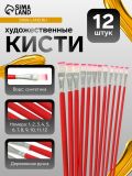Набор кистей для рисования, нейлон, 12 штук: №1, 2, 3, 4, 5, 6, 7, 8, 9, 10, 11, 12, плоские, деревянная ручка, международный размер