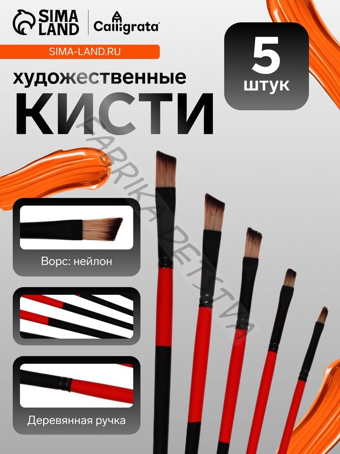 Набор кистей для рисования, нейлон, 5 штук, плоские, скошенные, международный размер