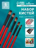 Набор кистей для рисования, нейлон, 5 штук, плоские, закругленные, деревянная ручка, международный размер