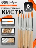 Набор кистей для рисования, нейлон, 6 штук: №1, 2, 3, 4, 5, 6, круглые, деревянная ручка, международный размер
