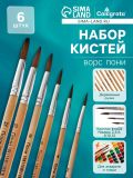Набор кистей для рисования, пони, 6 штук: № 2, 4, 6, 8, 10, 12, круглые, деревянная ручка, международный размер