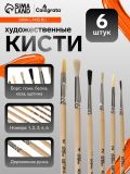 Набор кистей для рисования, пони, белка, коза, щетина, 6 штук: № 1, 2, 2, 3, 4, 6, Calligrata, круглые, плоские, ЭКОНОМ