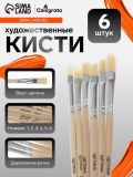 Набор кистей для рисования, щетина, 6 штук: № 1, 2, 3, 4, 5, 6, плоские, деревянная ручка, международный размер